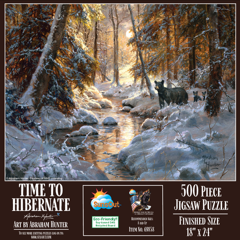 Artist: Abraham Hunter forest, bear, bears, snow, winter, cubs
