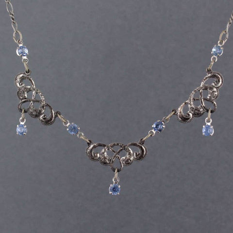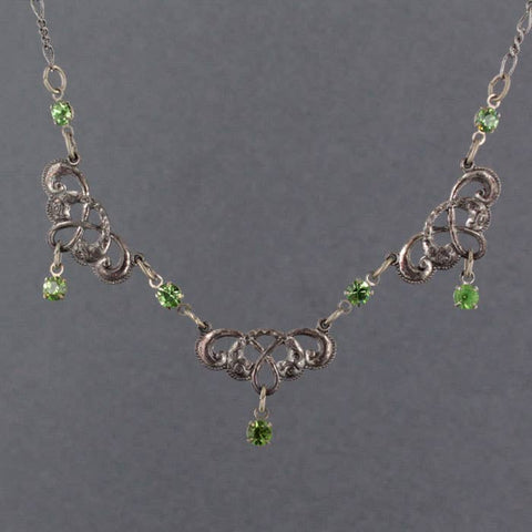 This necklace features vintage reproduction stamped metal findings in antique silver accented by crystal rhinestones. The necklace measures about 20 inches and is adjustable with a lobster claw clasp. This is the perfect necklace for proms & weddings! This necklace can be made in many colors. If you do not see the color you are looking for in the selection menu, please ask because any color can be made by request!